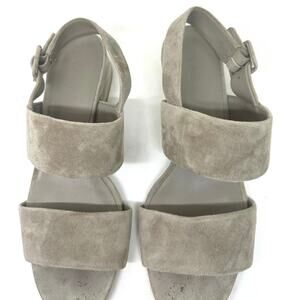 VINCE Suede Taye Two-Strap Block Chunky Heel Sandal in Woodsmoke - Sz 7.5