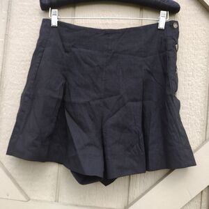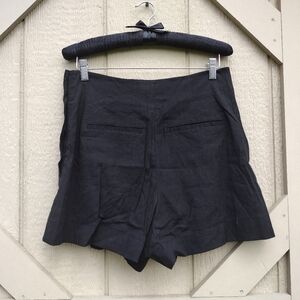 VINCE Sz 8 HIGH WAIST PLEAT FRONT SIDE BUTTONS LINEN Blend SHORTS Black