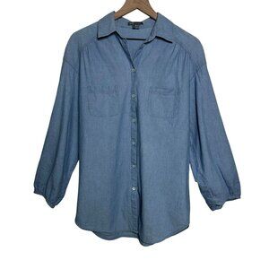 VINCE Sz Small Blue Denim Button Up Shirt Long Sleeve Pocket Minimalist Normie