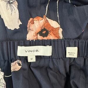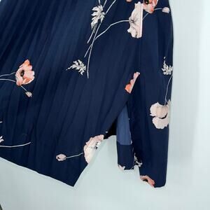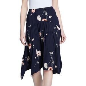 VINCE Tossed Poppy Pleated Tulip High Low Skirt in Marine