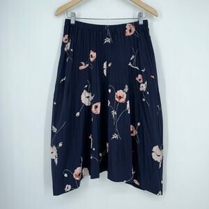 VINCE Tossed Poppy Pleated Floral Midi Knee Length Skirt in Marine