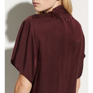 VINCE Twist Neck Flutter Sleeve Blouse in Black Plum