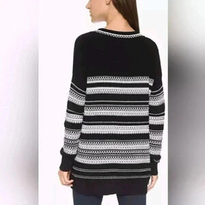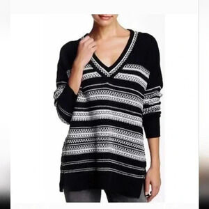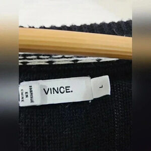 VINCE V Neck Knit Sweater Black/White Striped Size Large Pre Owned 100% Cotton