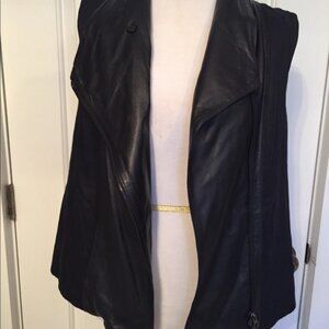 VINCE VEST ZIP JACKET BLACK LEATHER LINEN BLEND SLEEVELESS COAT Size M