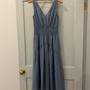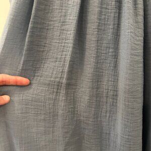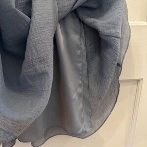 It's only been worn once but there is small stain as shown in the photos. The stain is not noticable within the folds, only visible if studied closely. I haven't tried to get the stain out so it's possible it's an easy fix.