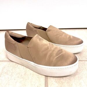 VINCE Warren Platform Sneakers Tan satin women’s size 8M preppy comfy