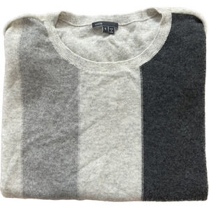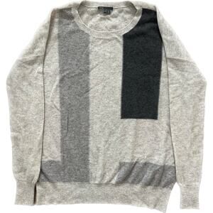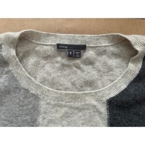 VINCE Women's 100% Gray Cashmere Color block Crew Neck Pullover Sweater Small