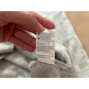 An incredibly soft and cozy cashmere sweater with a gray color block design on the front.