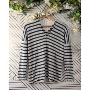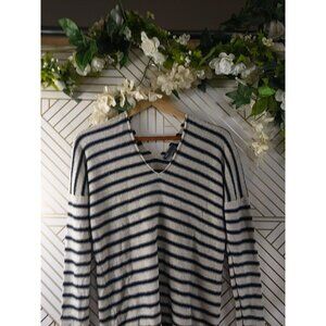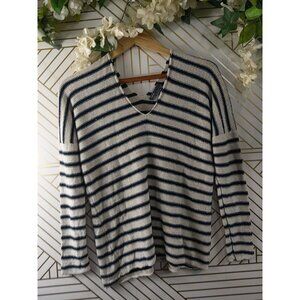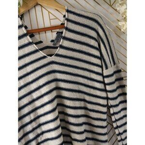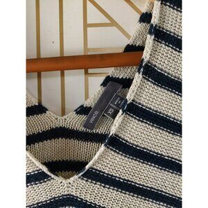 VINCE Women's Beige Navy Blue Striped Knit Sweater V Neck Pullover Size XS
