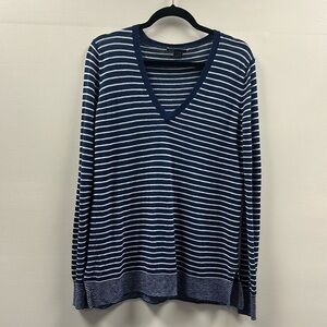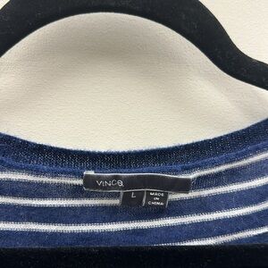 VINCE Womens Blue White Striped Wool Cashmere V-Neck Sweater Sz Large Preppy