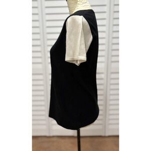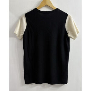 VINCE Womens Medium 100% Cashmere Short Sleeve Color Block Sweater Black White