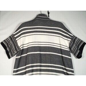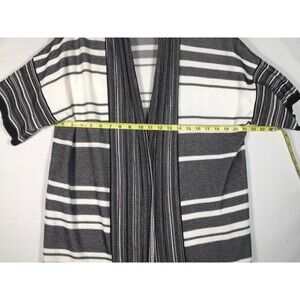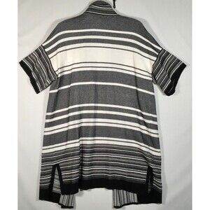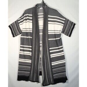 VINCE Women's Short Sleeve Open Front Long Striped Cardigan Black White SZ Small