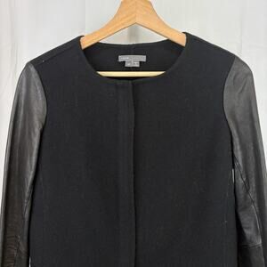 VINCE Womens Size S Leather Wool Zip Front Jacket Moto Cropped Black