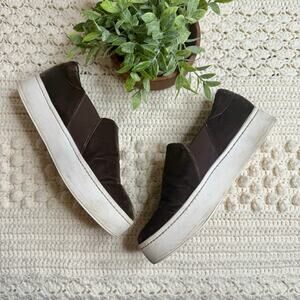 - VINCE Women's Size 10 Warren Velvet Platform Slip On Sneaker Shoes Chocolate Brown -