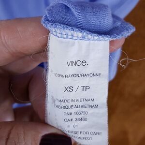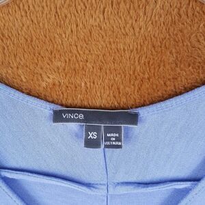 VINCE Womens Top XS Blue Pullover VNeck VNeck Rayon Stretch Short Sleeve