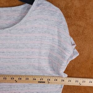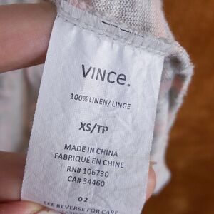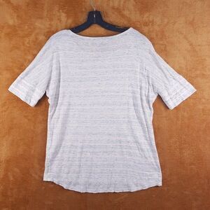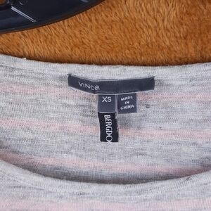 VINCE Womens Top XS Gray Pink Stripe Linen Pullover Short Sleeve Tee
