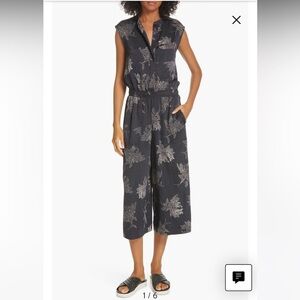 VINCE / Woodblock Floral crop Sleeveless Jumpsuit Coastal XL