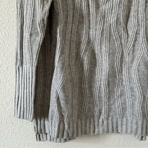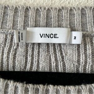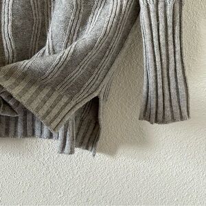 VINCE Wool Cashmere Blend 3-D Waterfall Stripe Knit Gray Sweater Women Size Medium in good condition/ stretchy/ has slight high low hem with small side splits / has a hole on the back right sleeve- See all photos- Final Sale as is