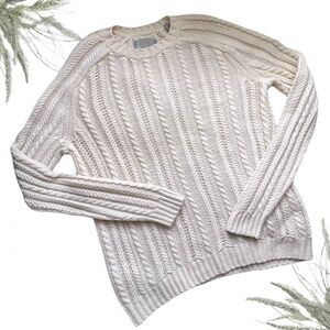 VINCE Wool Cashmere Chunky Cable Knit Sweater Cream Large L Unisex