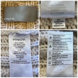 Cable knit wool cashmere blend luxe sweater from VINCE in cream Sz large