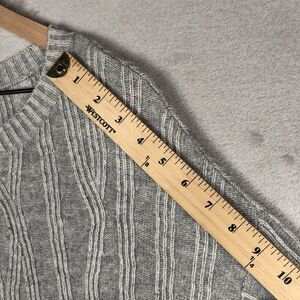 This VINCE sweater in size Medium features a gray wool and cashmere blend material that makes for a cozy and warm fit, perfect for the chilly fall and winter seasons. The unique cable-knit and split waist design adds a touch of designer style to this classic pullover. Ideal for both travel and casual occasions, this sweater boasts a relaxed fit and long sleeves with a crew neckline. The oversized features and knit fabric type make for a comfortable and stylish fit.