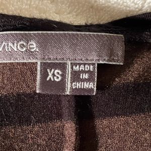 Famously super-soft Vince pocket tee. Wide black and dark brown stripes and that recognizable silky-soft fabric. Loose fitting XS with 3/4 sleeves. Approximately 16” chest and 22” length. Free pickup in San Francisco, CA.