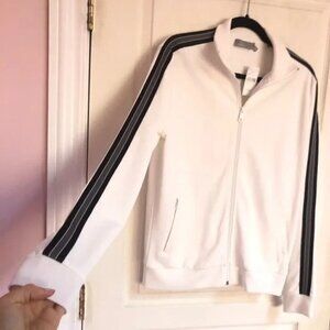 Sporty stripes run down the sleeves of a versatile track jacket in a classic fit that hits the sweet spots of casual style with attitude. Fit: this style fits true to size. Stand collar. Long sleeves with banded cuffs. Front zip closure. Front zip pockets. Solid with contrast sleeve stripe trim.