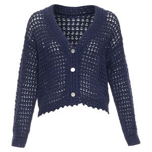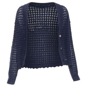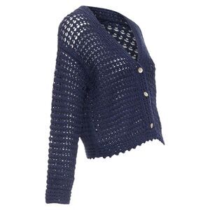Delivery Duty Paid included – VINCE navy organic cotton crochet open knit scalloped cropped cardigan SReference: SNKO/A00554Brand: VinceMaterial: CottonColor: NavyPattern: SolidClosure: ButtonExtra Details: Navy blue organic cotton crochet V-neck cardigan from VINCE. Features a delicate crochet design, front button fastening, V-neckline, and long sleeves. Made from 100% organic cotton, it is machine washable and imported.Made in: ChinaCONDITION:Condition: Unworn in mint condition, with tags. Comes with: Style code present (Generic) Designer tags. SIZINGDesigner size: SSize reference: US2-4 / UK8 / IT40 / FR36 / XS-SMEASUREMENTS: Shoulder to shoulder: 73cm / 28.5"Chest: 49cm / 19.1"Waist: 46cm / 17.9"Length: 56cm / 21.8" Vince. This Vince item is authentic.Measurments: length: 560 mm strap length: 0 mm handle drop: 0 mm