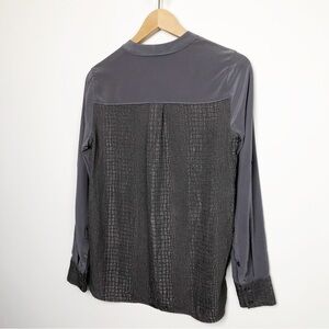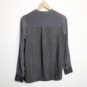 Vince snake, croc, embossed design, silk button, down shirt.