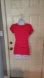 The pics look red but the T is a dark pink. Super super soft! Color is closest to the pic that has the tag in it.