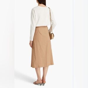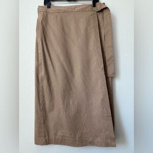 VINCE Buckle Wrap Linen Blend Midi Wrap Skirt Sandshell Size 12