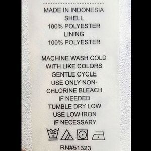 * 100% Polyester Lining: 100 % Polyester