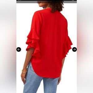 VINCE CAMUTO Ruffle Sleeve Split Neck Blouse Cherry Red size Small.