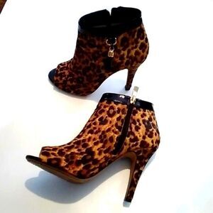 VINCE CAMUTO VC-KEVIA LEATHER PEEP-TOE ANIMAL PRINT HEELS WOMEN BOOTS SIZE 6M