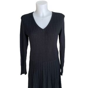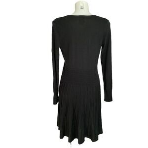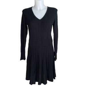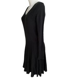 VINCE CAMUTO Black RIBBED Knit Short Fit and Flare Dress Longsleeves size large