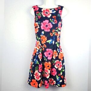 Gorgeous floral sleeveless dress with side pockets and zips on back.