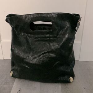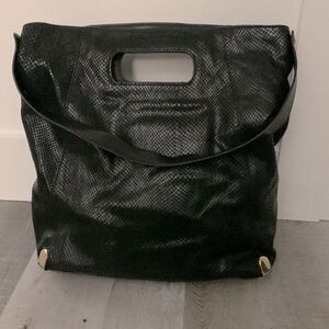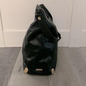 VINCE Camuto slouchy faux snakeskin leather bag hand bag shoulder bag goldtone accent slip/zip pockets black. Dust bag included.