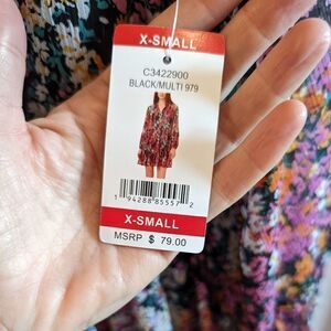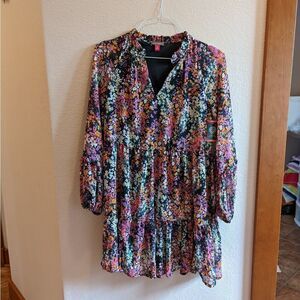 Women's dress, sheer and flowy with black lining. This lightweight dress can be worn in warm weather or add some leggings when the temperature drops. Vince Camuto size XS