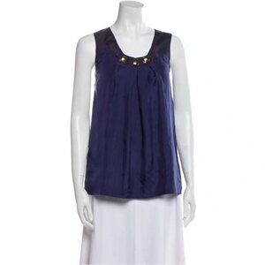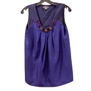 VINCE~SQUARE NECKLINE~BLUE 100% SILK SLEEVELESS TOP SQUARE NECKLINE