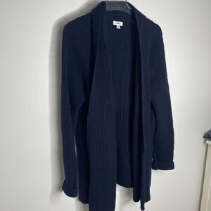 VINCE WOOL CASHMERE DIRECTIONAL RIB WOMEN Open CARDIGAN SIZE Small S Navy Blue