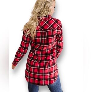 VINE & LOVE Cold Weather Shirt Size Large Tartan Plaid Rounded Hem NWT