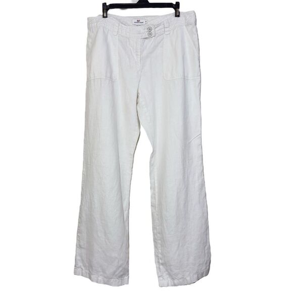 VINEYARD VINES 100% LINEN WHITE CARGO WIDE LEG PANTS POCKETS RESORTWEAR 10