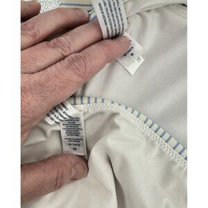 CONDITION: Overall in great shape...the top is a size XS and the bottoms are a Medium. There is just the slightest discoloration from sun or chlorine, not a big deal. Still lots of wear left.