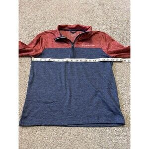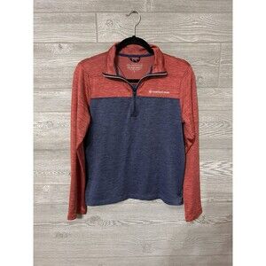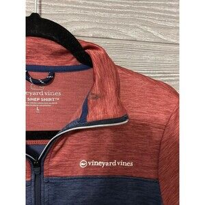 This Vineyard Vines boys' pullover sweatshirt is designed for performance with features like moisture-wicking and quick-dry technology, making it ideal for travel, activewear, and casual wear. The sweatshirt is in size large with a solid red color and a 1/4 zip closure for easy on and off. The garment care is machine washable, and it showcases the Vineyard Vines logo and accents like a zipper. This classic and designer piece is great for school or sports activities during the fall, winter, and spring seasons.