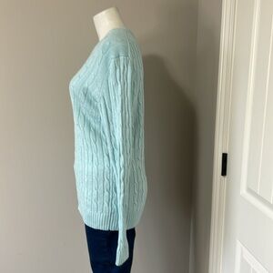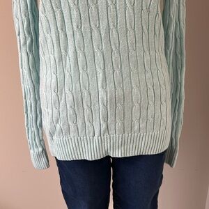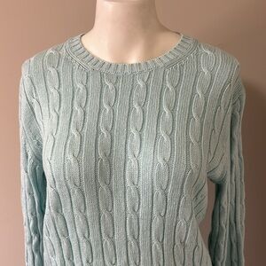 VINEYARD VINES Cable Knit Shine Crewneck Sweater Mist Green Ribbed Sz L