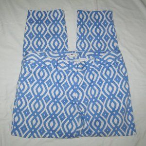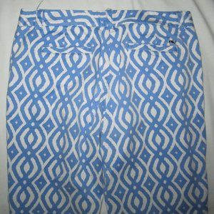 Vineyard Vines cropped pants feature a pretty blue and white pattern, fly front, belt loops, and notched ankles. Light pilling in places but nothing drastic - excellent condition.