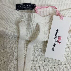 Vineyard Vines Lounge Pants, White Knit Pants, Hemp Cotton Blend, Winter White Loungewear, Wide Leg Lounge Pants, Soft Knit Trousers, Cozy Lounge Bottoms, Minimalist Resort Wear, Textured Waffle Knit, Neutral Wardrobe Staple, Comfy Relaxed Fit Pants, Luxury Casual Clothing, NWT Vineyard Vines