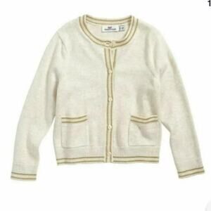 NEW VINEYARD VINES GOLD Trim Holiday Cardigan Sweater Button Down Cream