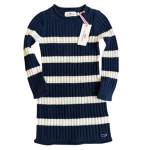 keywords: vineyard vines girls dress, striped sweater dress, preppy kids clothing, NWT vineyard vines, girls holiday dress, girls casual sweater dress, whale logo dress, navy stripe knit dress