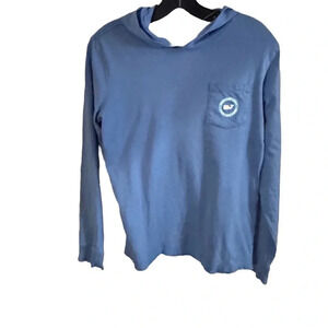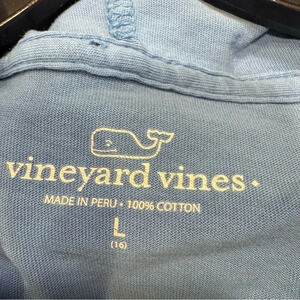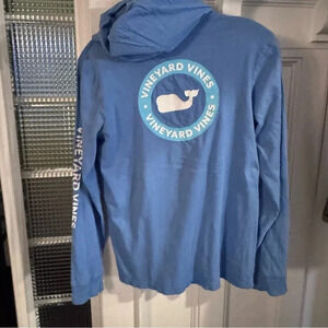 Excellent condition. Vineyard Vines pullover hoodie, blue, front pocket, logo on the back and front and sleeve. 100% cotton. Size large. See photos for measurements